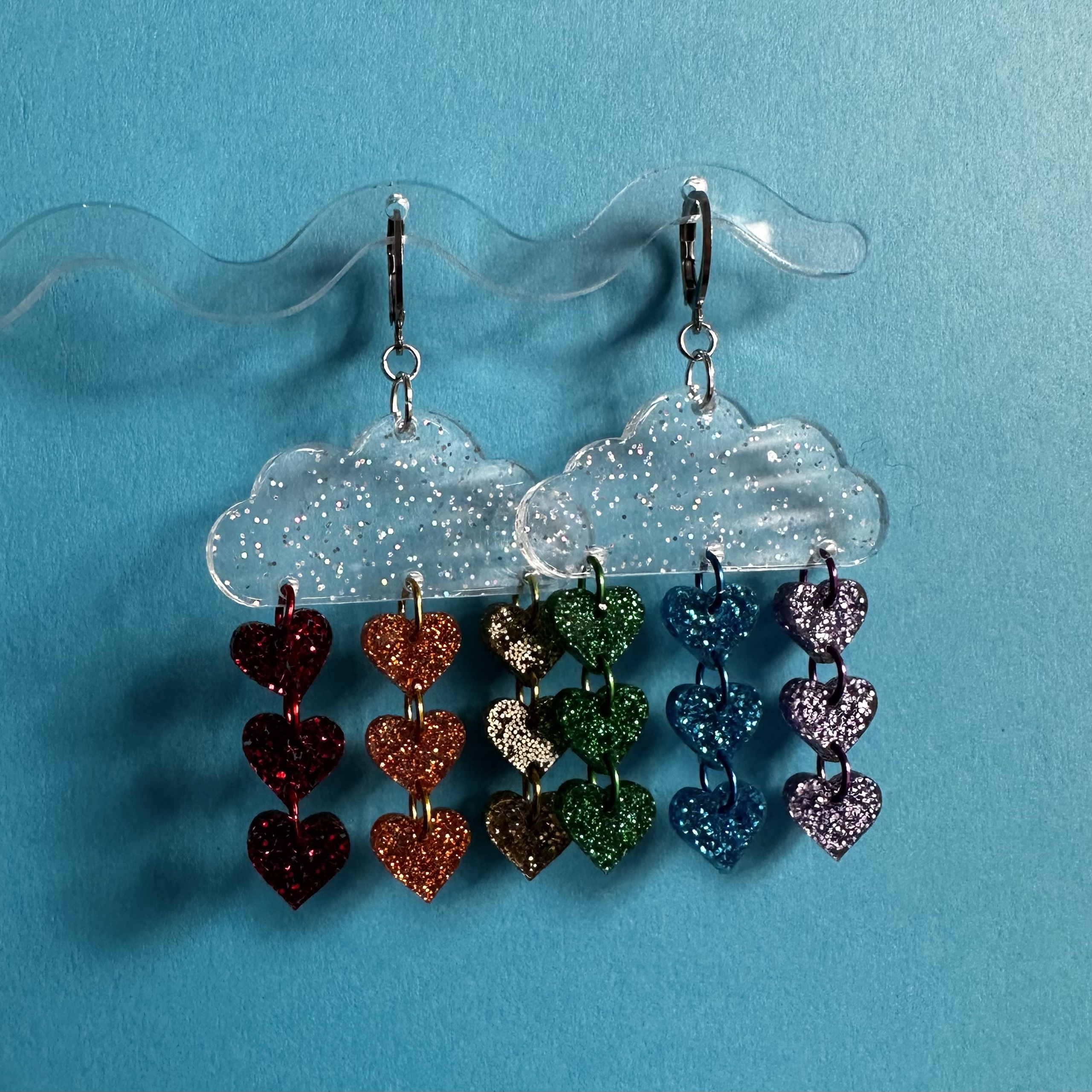 Really like the design, colours and glittery acrylic of this set. Very happy with my purchase 💜🧡🩵